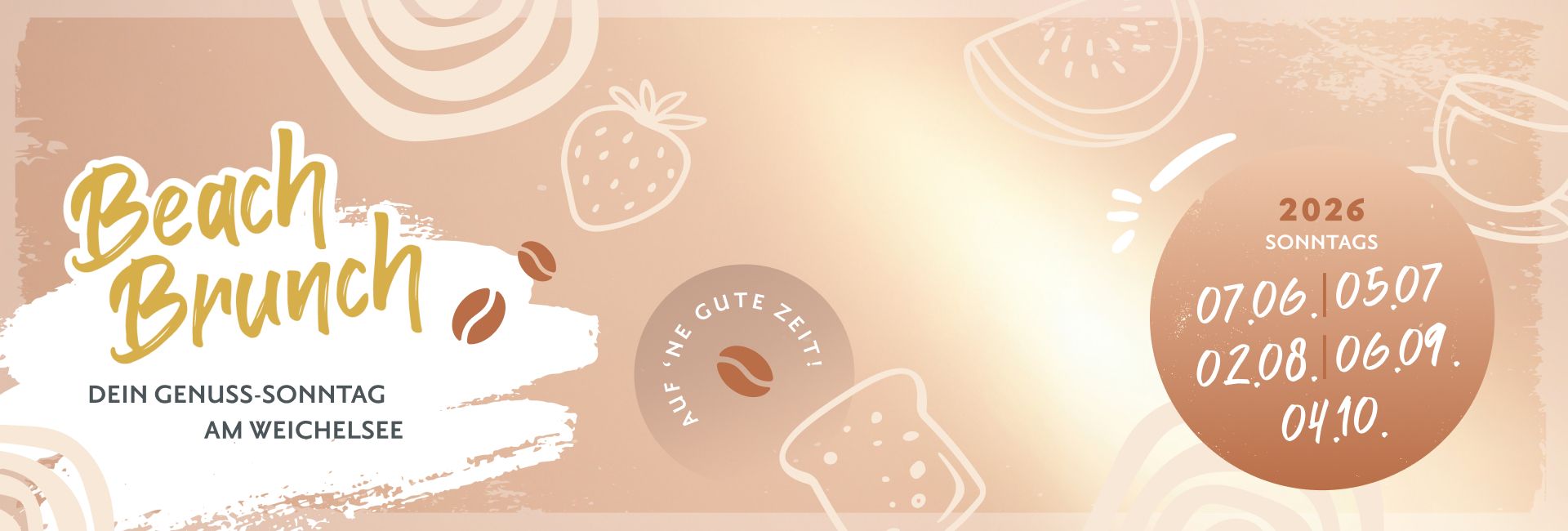 Bei unserem BeachBrunch erwartet euch ein reichhaltiges Büfett mit kalten und warmen Speisen sowie frischen Backwaren, Eierspeisen und Fischvariationen. Auch an healthy, veggie und veganen Alternativen soll es nicht fehlen und ihr könnt mit euren Liebsten bei uns die Seele baumeln lassen - alles in lockerer Umgebung und mit vielen „good vibes only“.